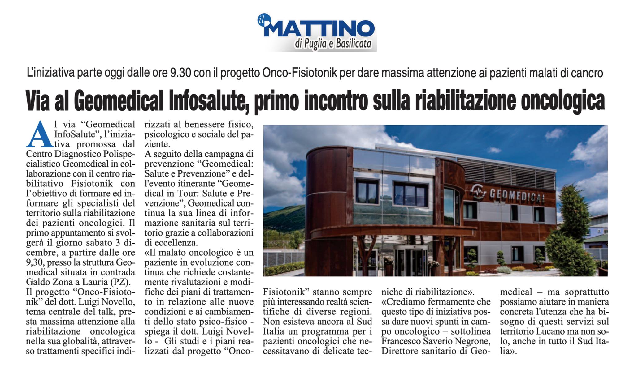 Dic52022Rassegna StampaLeggi l’articolo cliccando qui. Altri articoliIl servizio de La Nuova Tg dell’evento Geomedical InfoSalute – Progetto “Onco-Fisiotonik”12 Dicembre 2022Il servizio dell’Eco di Basilicata dedicato all’iniziativa “Geomedical Infosalute”5 Dicembre 2022La Nuova del Sud dedica ampio spazio all’iniziativa “Geomedical Infosalute”5 Dicembre 2022Prosegue l’eco mediatica dell’iniziativa “Geomedical Infosalute” sulla testata online ivl245 Dicembre 2022Si parla dell’iniziativa “Geomedical Infosalute” su L’Eco di Basilicata5 Dicembre 2022Su “Il Mattino” il commento dello specialista Gianni Ricco sui temi della prevenzione28 Novembre 2022